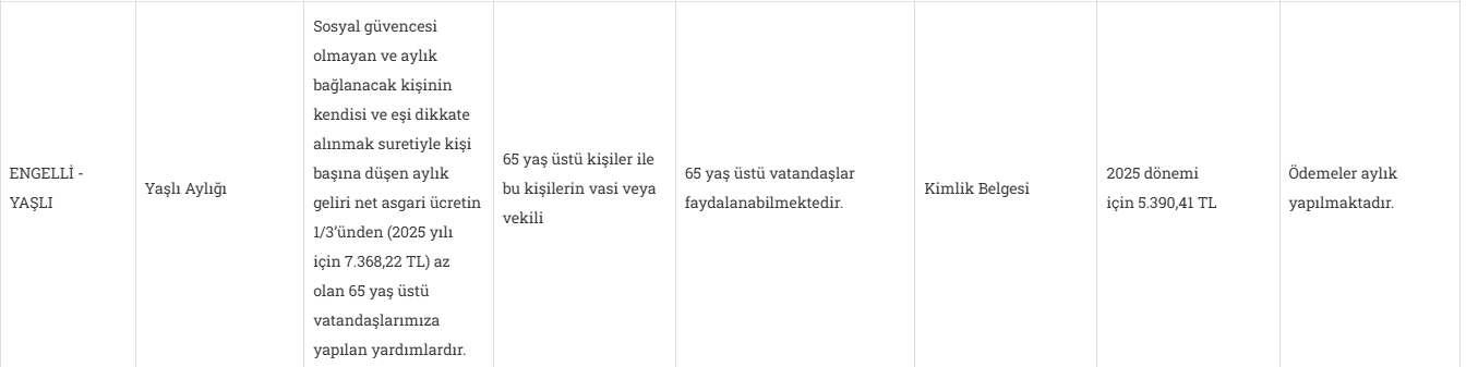 Ekonomik durumu yetersiz olan bireylere yapılan bu destekler, sosyal güvencesi olmayan 65 yaş üstü vatandaşlarımızın hayatını kolaylaştırmayı amaçlıyor. Bu yardım programına “Yaşlı Aylığı” deniyor. Aile ve Sosyal Hizmetler Bakanlığı’nın resmi sitesinde de detayları açıklanan bu destek, adeta bir maaş gibi düzenli olarak ödeniyor.